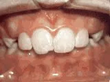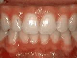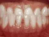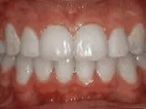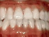 This patient's lateral incisors were congenitally missing. She had braces for 20 months to move the teeth into their correct positions, then the missing teeth were replaced with bonded "Maryland" bridges.